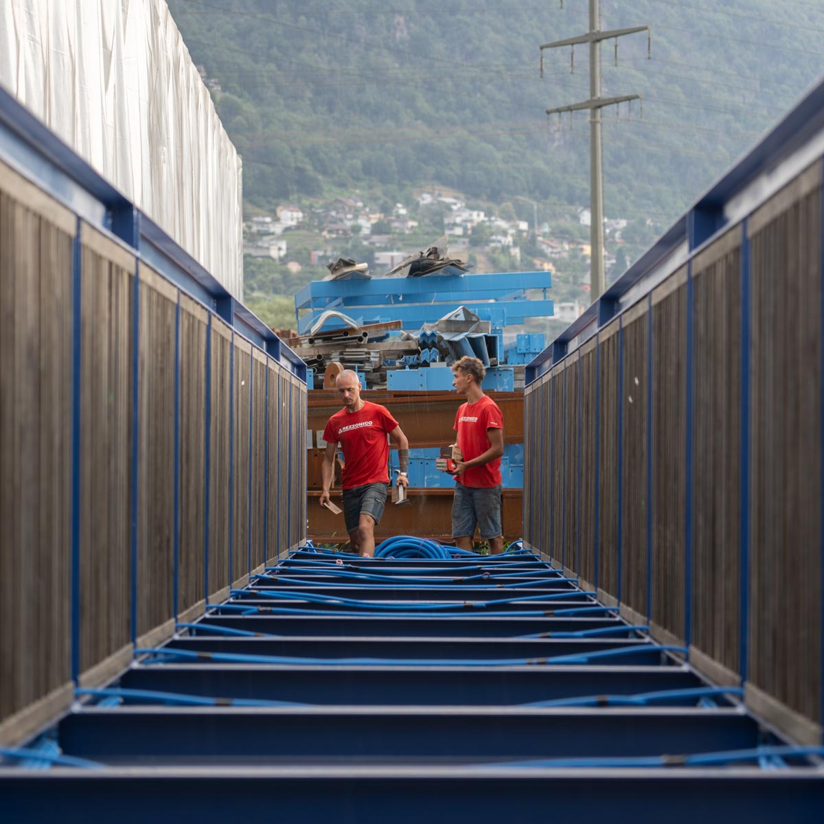Progettata da Atelier PeR architetti, in collaborazione con lo studio di ingegneria Holinger, la struttura è in costruzione a Riazzino per mano delle Officine Ghidoni e della ditta Rezzonico, entrambe sponsor del progetto. La passerella sarà trasportata a Rancate in un unico pezzo e posata la notte del 30 agosto.